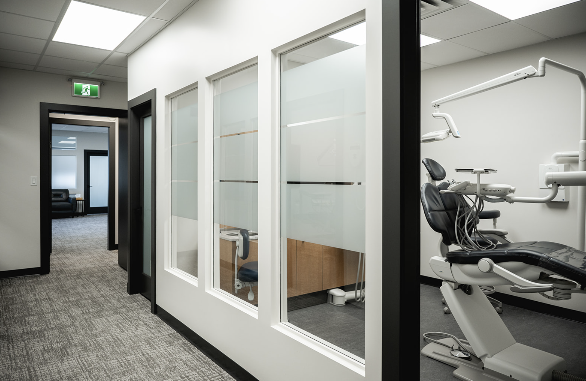 A complete renovation that transforms a once dark dental office into a warm, welcoming space inspired by its waterfront surroundings, featuring an expanded layout, a light-filled reception area, natural white oak details, and soft, cohesive finishes that create a calm, modern environment.